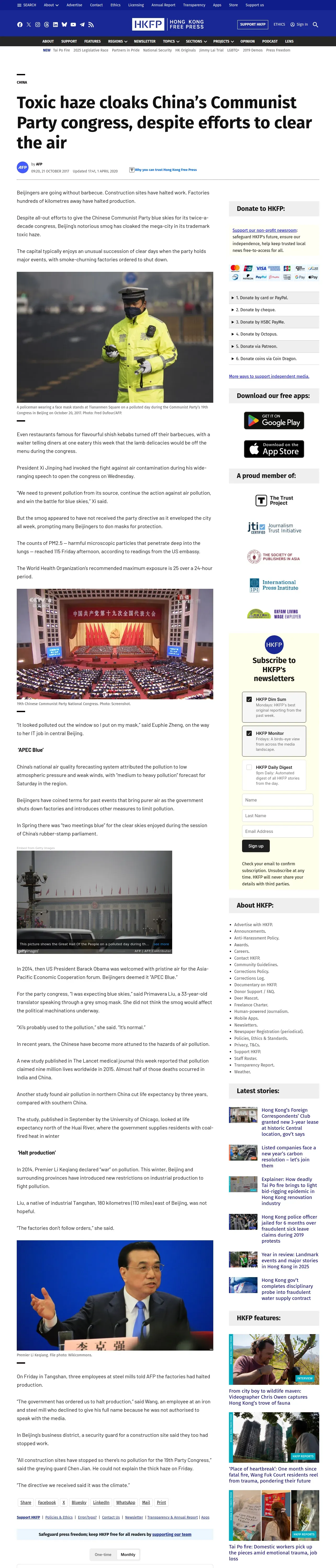 取得元URL: https://hongkongfp.com:443/2017/10/21/toxic-haze-cloaks-chinas-communist-party-congress-despite-efforts-clear-air/