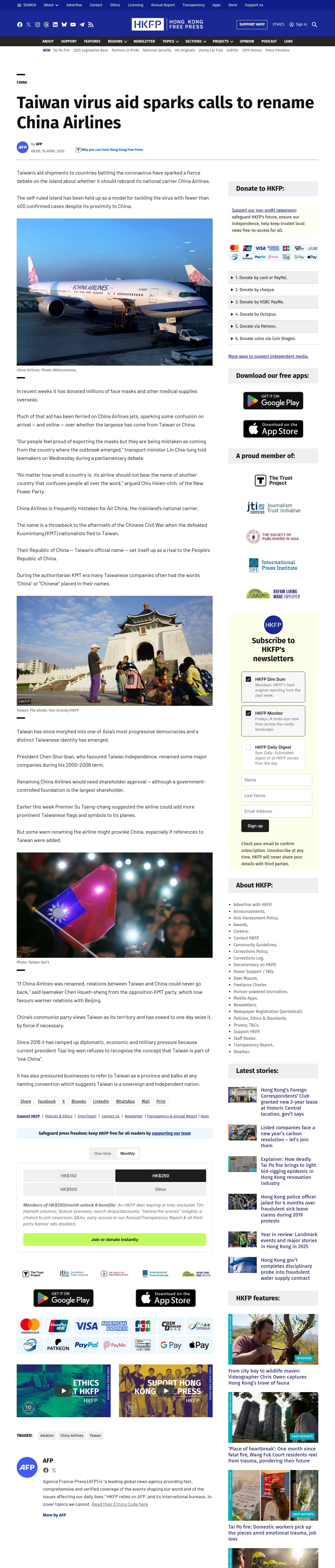https://hongkongfp.com:443/2020/04/16/taiwan-virus-aid-sparks-calls-to-rename-china-airlines/