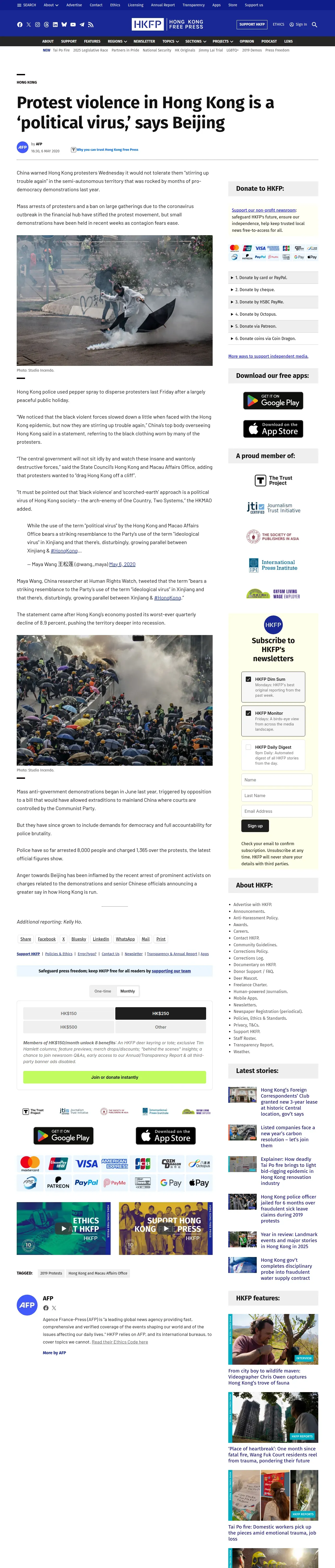 https://hongkongfp.com:443/2020/05/06/protest-violence-in-hong-kong-is-a-political-virus-says-beijing/
