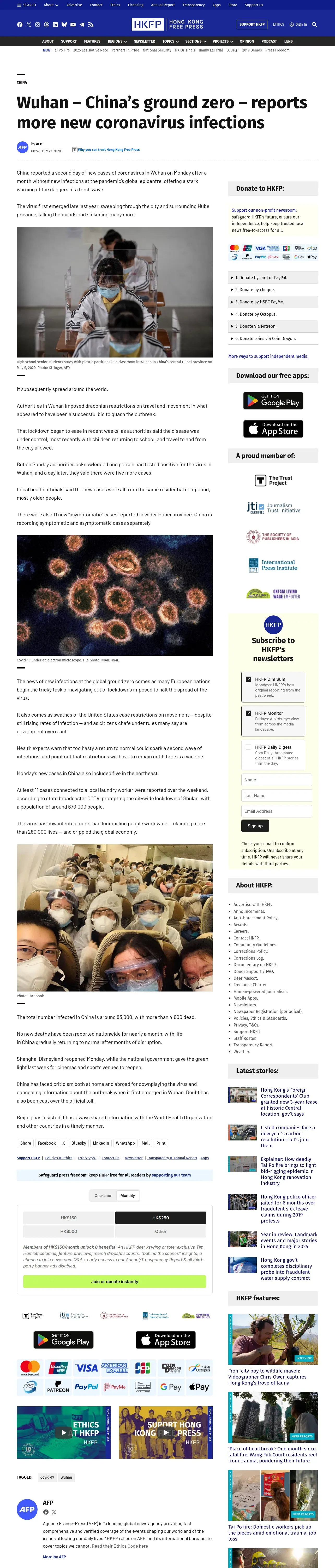 取得元URL: https://hongkongfp.com:443/2020/05/11/wuhan-chinas-ground-zero-reports-more-new-coronavirus-infections/