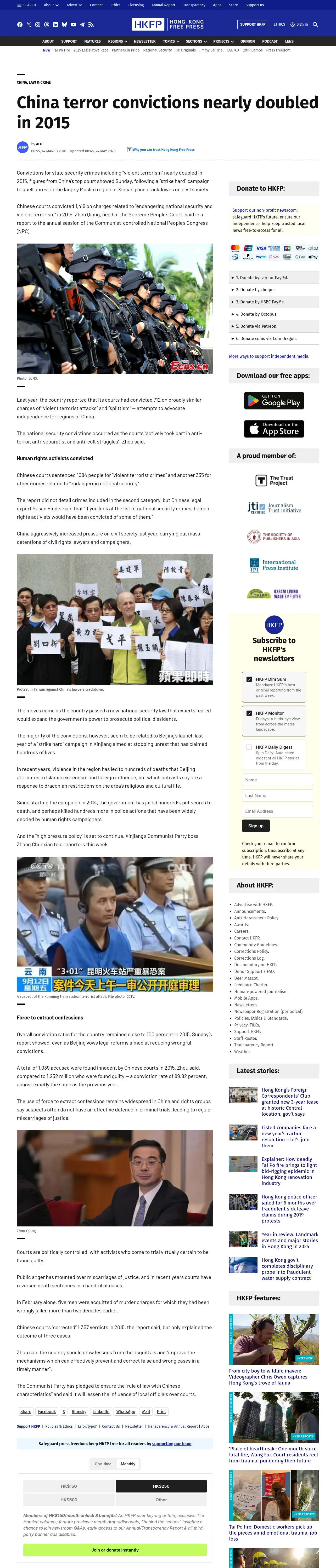 https://hongkongfp.com:443/2016/03/14/china-terror-convictions-nearly-doubled-in-2015/