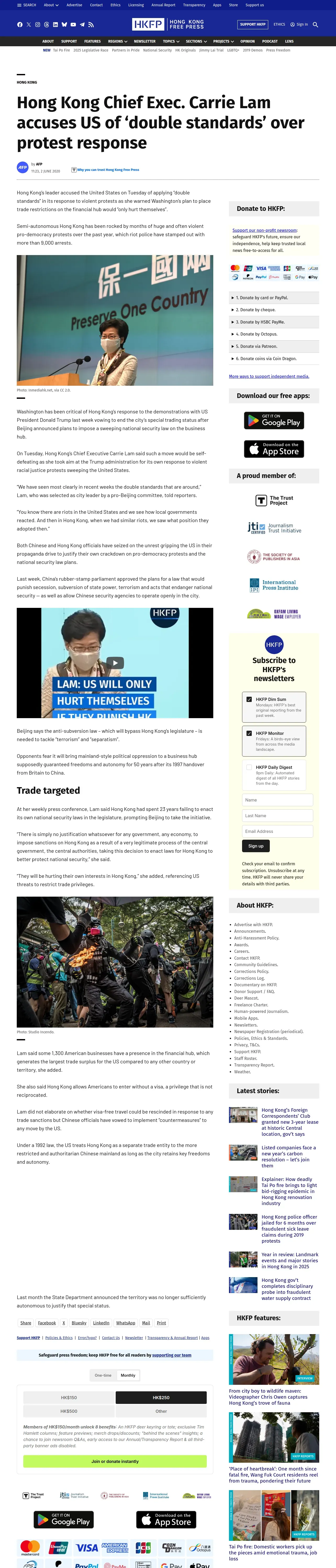 https://hongkongfp.com:443/2020/06/02/hong-kong-chief-exec-carrie-lam-accuses-us-of-double-standards-over-protest-response/