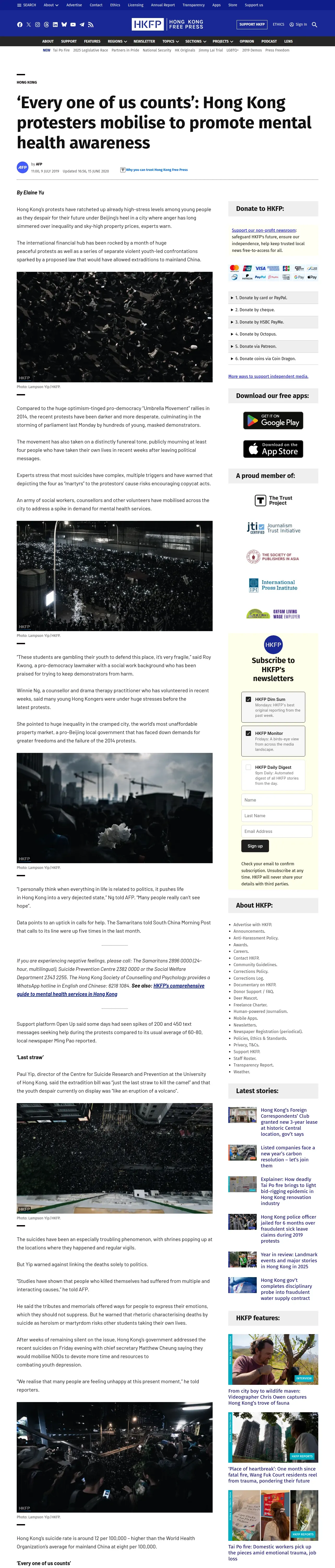 取得元URL: https://hongkongfp.com:443/2019/07/09/every-one-us-counts-hong-kong-protesters-mobilise-promote-mental-health-awareness/