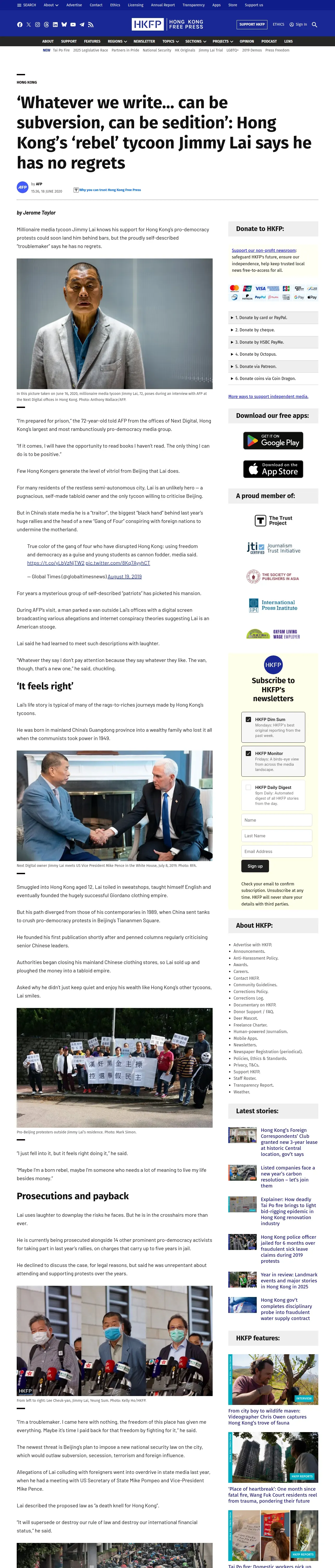 https://hongkongfp.com:443/2020/06/18/whatever-we-write-can-be-subversion-can-be-sedition-hong-kongs-rebel-tycoon-jimmy-lai-says-he-has-no-regrets/