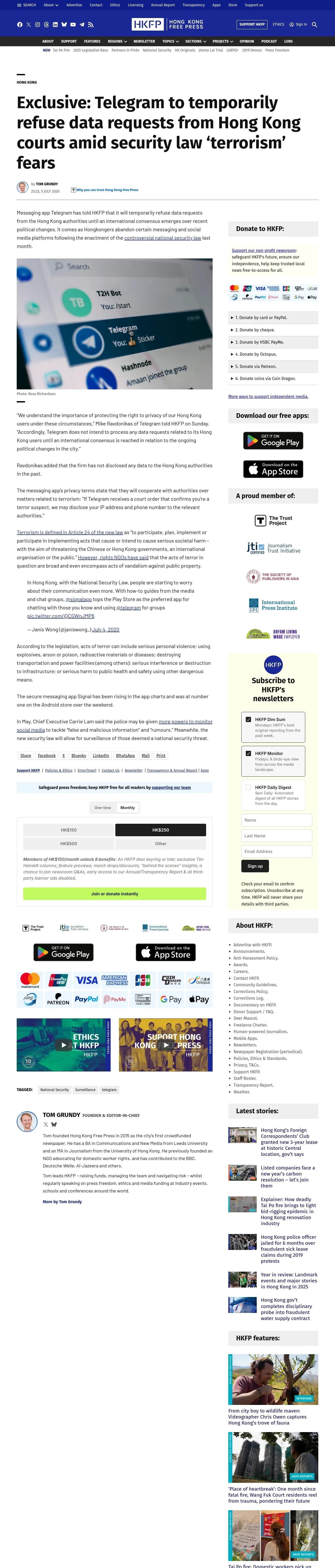 取得元URL: https://hongkongfp.com:443/2020/07/05/exclusive-telegram-to-temporarily-refuse-data-requests-from-hong-kong-courts-amid-security-law-terrorism-row/