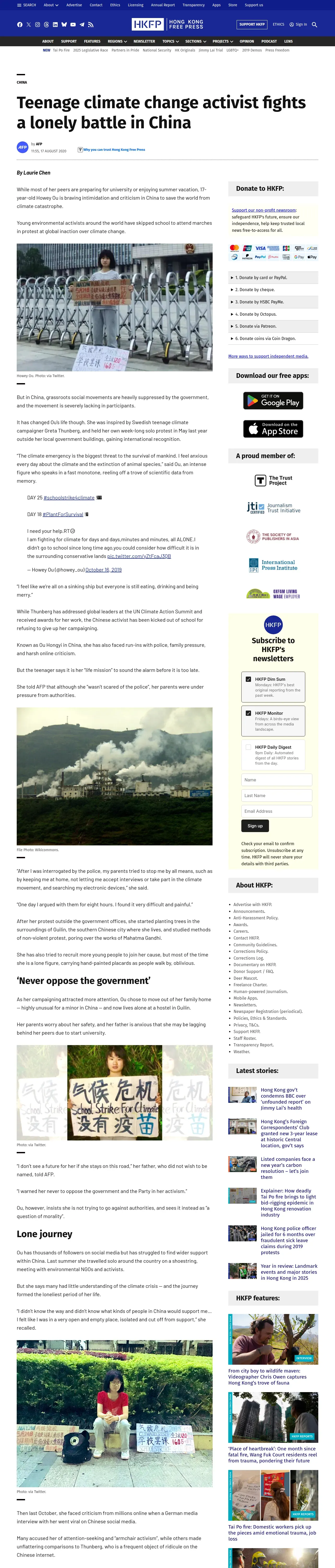 https://hongkongfp.com:443/2020/08/17/teenage-climate-change-activist-fights-a-lonely-battle-in-china/