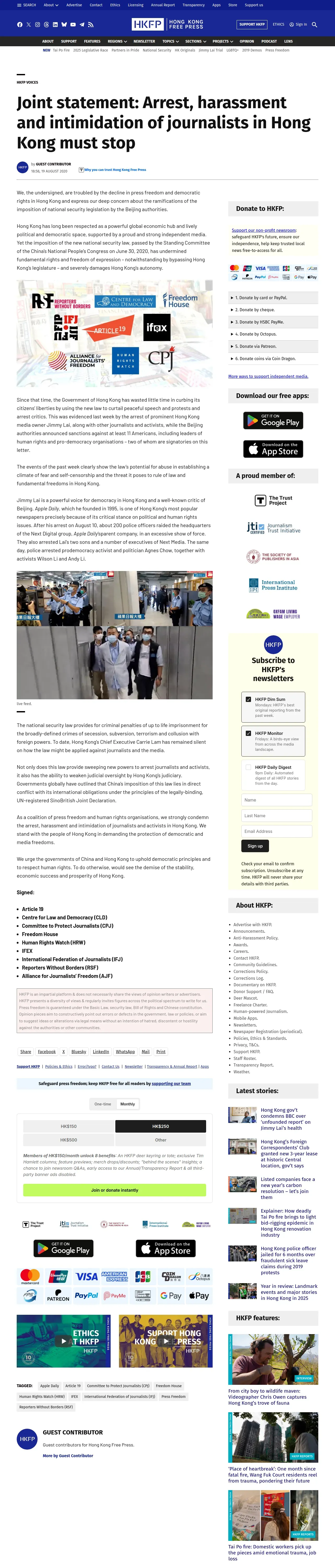 https://hongkongfp.com:443/2020/08/19/joint-statement-arrest-harassment-and-intimidation-of-journalists-in-hong-kong-must-stop/
