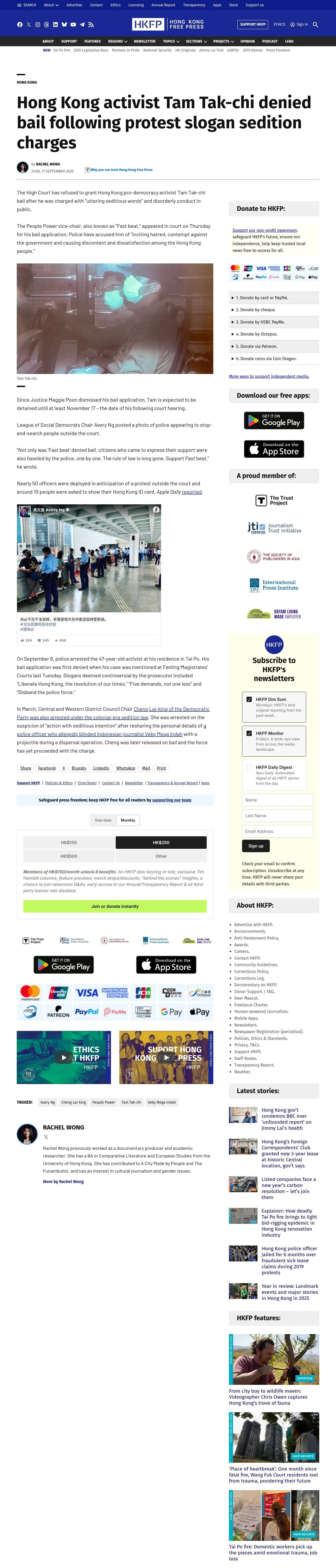 https://hongkongfp.com:443/2020/09/17/hong-kong-activist-tam-tak-chi-denied-bail-following-protest-slogan-sedition-charges/