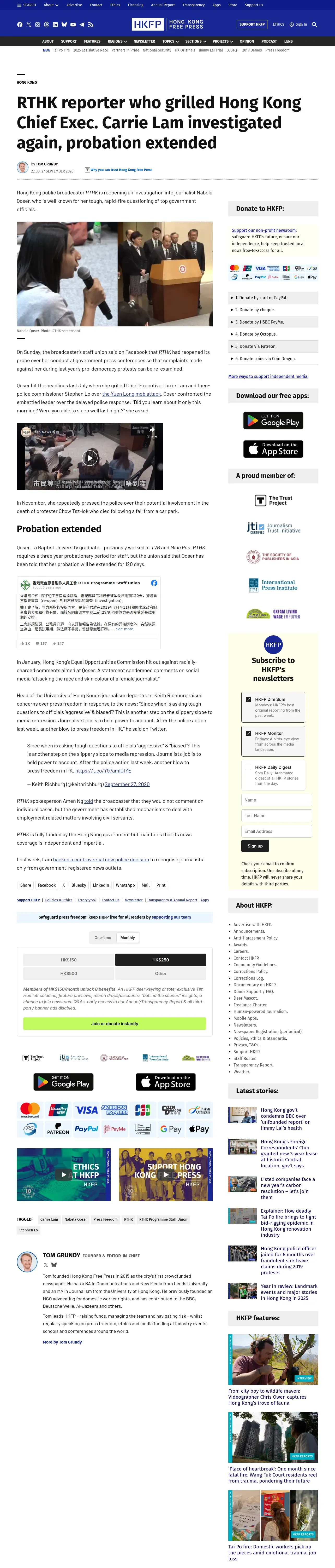 取得元URL: https://hongkongfp.com:443/2020/09/27/rthk-reporter-who-grilled-hong-kong-chief-exec-carrie-lam-investigated-again-probation-extended/