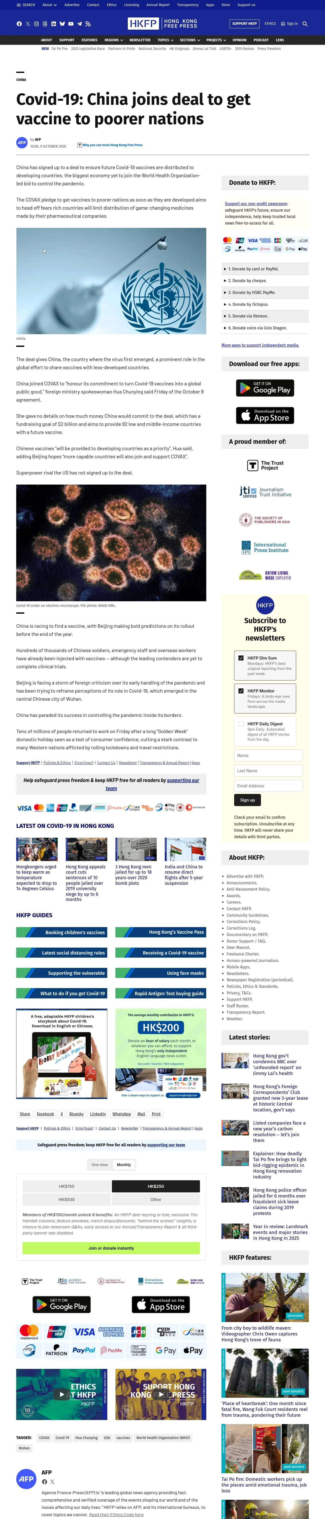 取得元URL: https://hongkongfp.com:443/2020/10/09/covid-19-china-joins-deal-to-get-vaccine-to-poorer-nations/