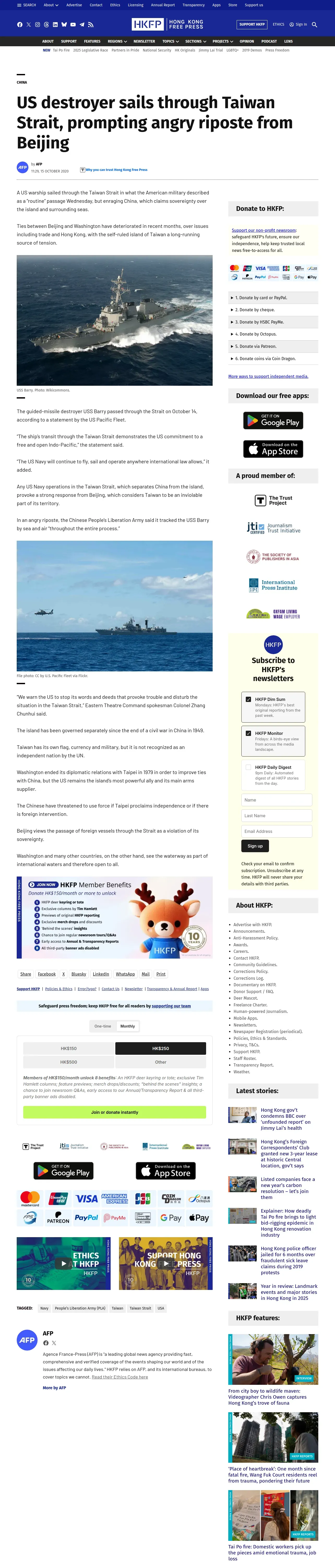 https://hongkongfp.com:443/2020/10/15/us-destroyer-sails-through-taiwan-strait-prompting-angry-riposte-from-beijing/