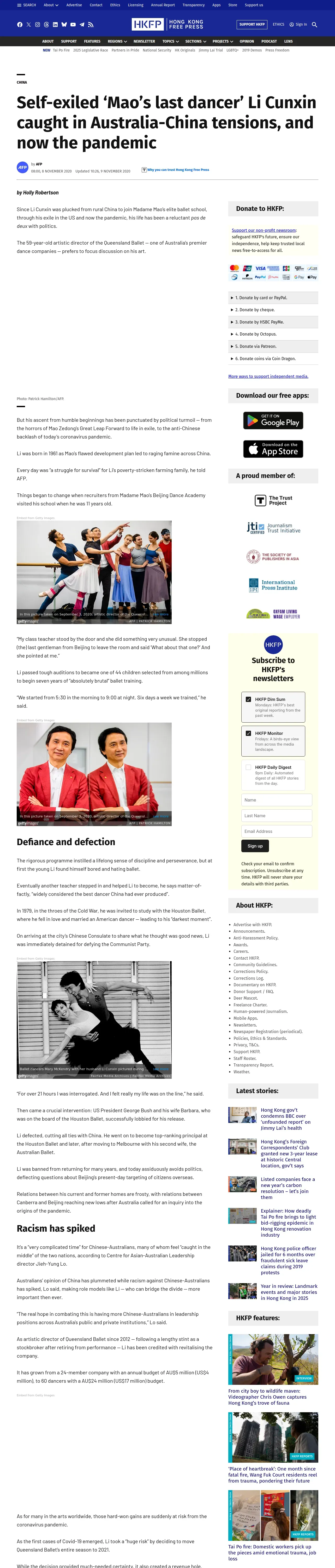 https://hongkongfp.com:443/2020/11/08/self-exiled-maos-last-dancer-li-cunxin-caught-in-australia-china-tensions-and-now-the-pandemic/