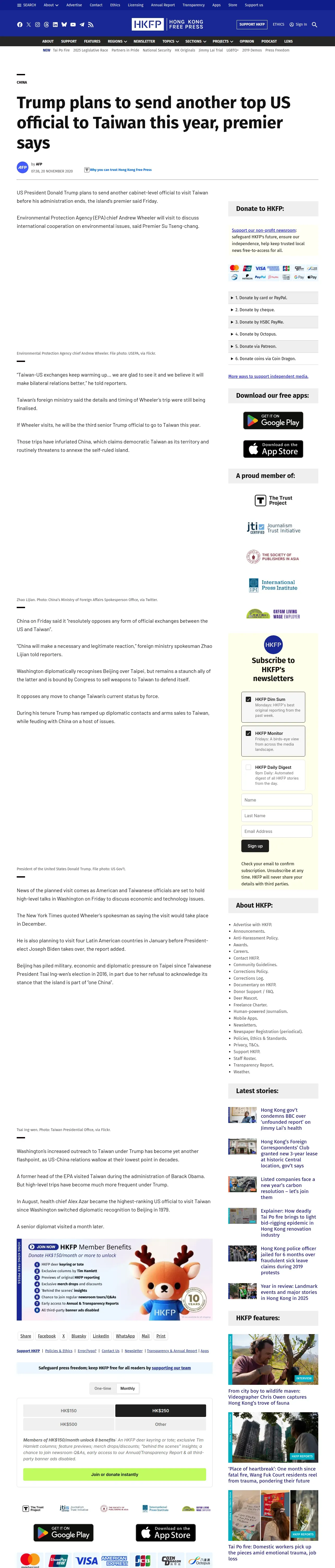 https://hongkongfp.com:443/2020/11/20/trump-plans-to-send-another-top-us-official-to-taiwan-this-year-premier-says/