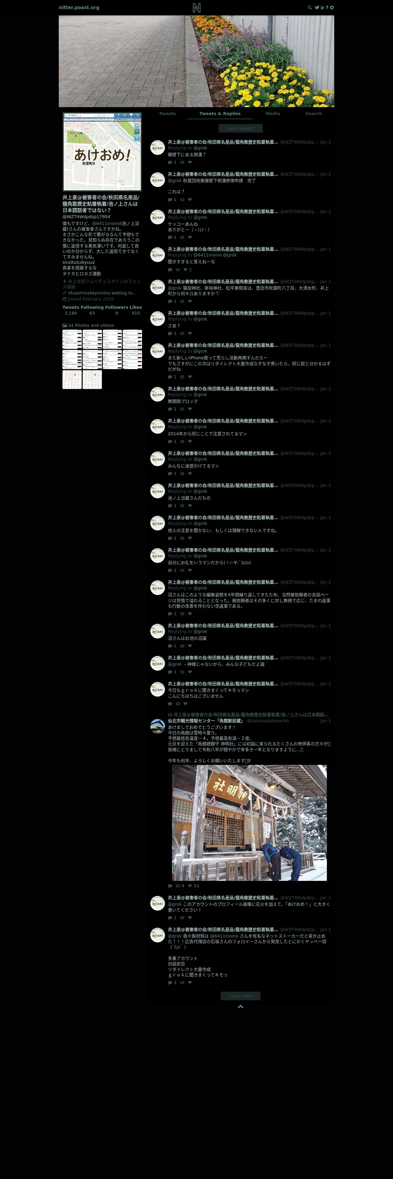 取得元URL: https://nitter.poast.org:443/WZT4Wdpdzp17954/with_replies?cursor=DAAHCgABG9o7gBT__-oLAAIAAAATMjAwNjcxNjQxMjU3NzA2NzQzNwgAAwAAAAIAAA