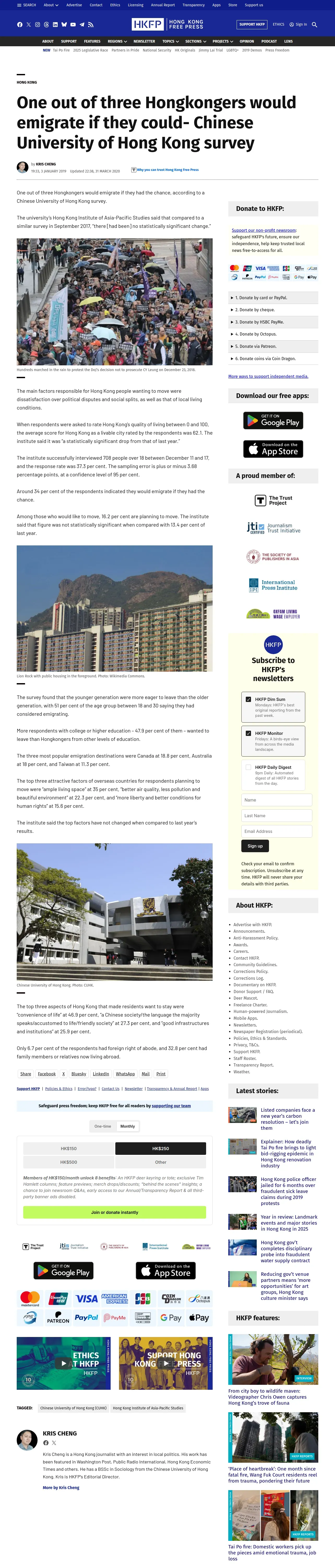 https://hongkongfp.com:443/2019/01/03/one-three-hongkongers-emigrate-chinese-university-hong-kong-survey/