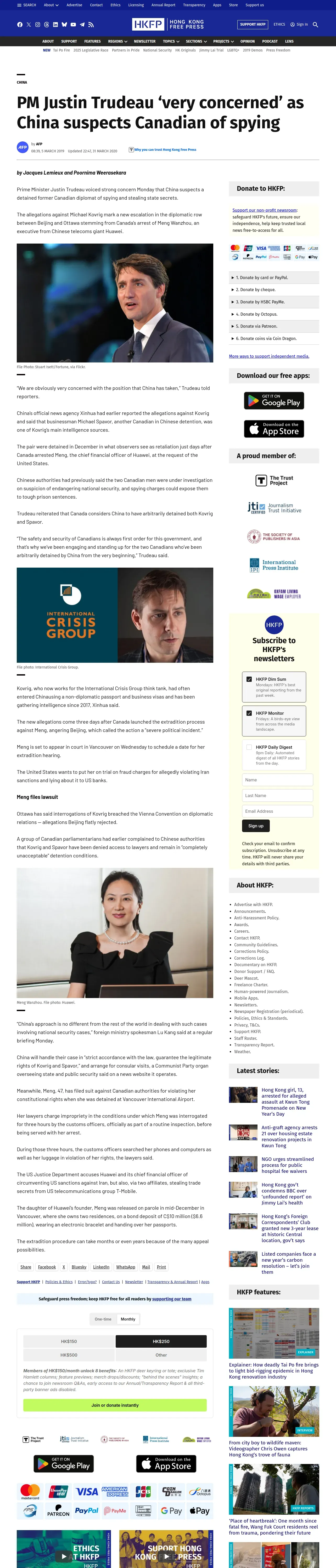 https://hongkongfp.com:443/2019/03/05/pm-justin-trudeau-concerned-china-suspects-canadian-spying/