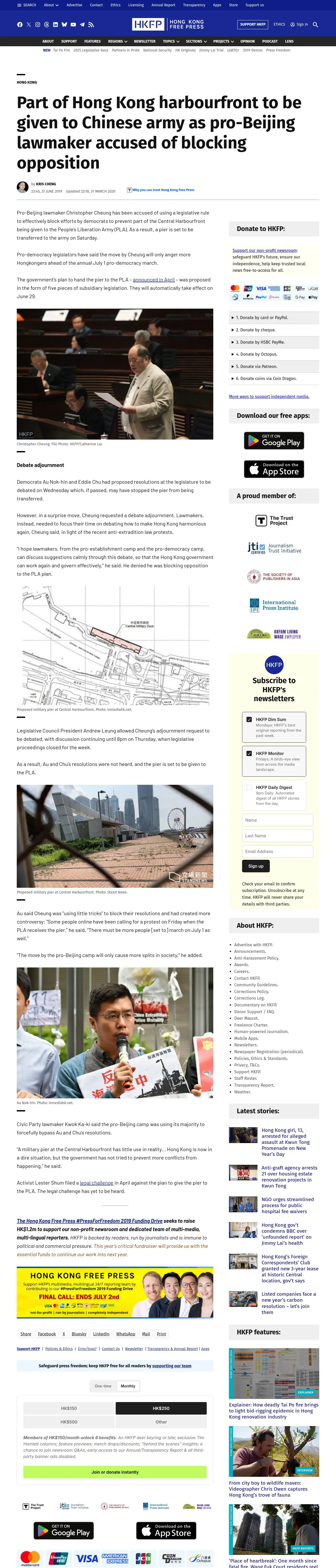 取得元URL: https://hongkongfp.com:443/2019/06/27/part-hong-kong-harbourfront-given-chinese-army-pro-beijing-lawmaker-accused-blocking-opposition/