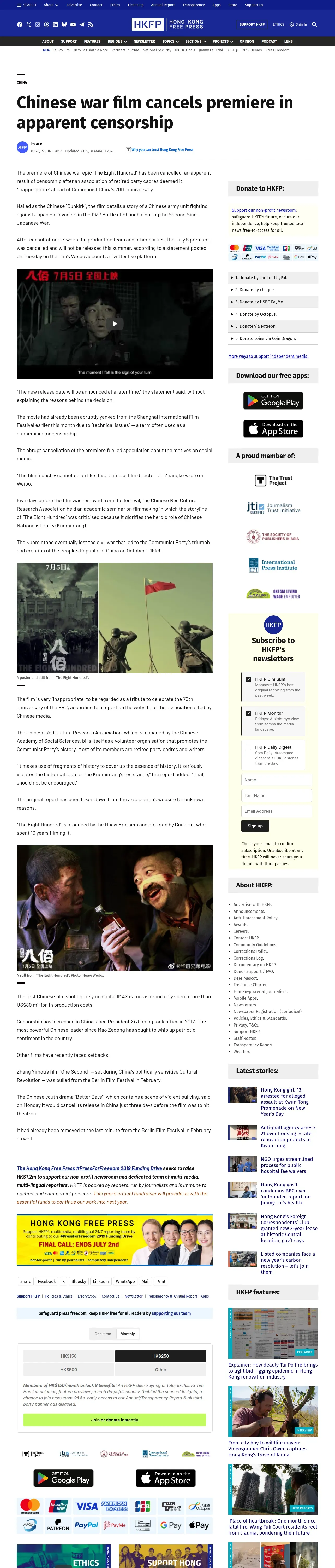https://hongkongfp.com:443/2019/06/27/chinese-war-film-cancels-premiere-apparent-censorship/