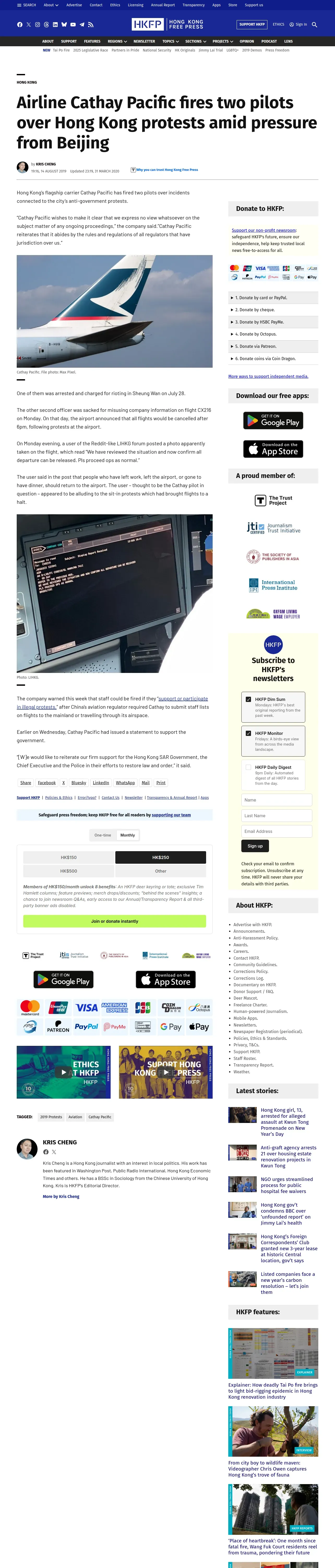取得元URL: https://hongkongfp.com:443/2019/08/14/breaking-airline-cathay-pacific-fires-two-pilots-hong-kong-protests-amid-pressure-beijing/