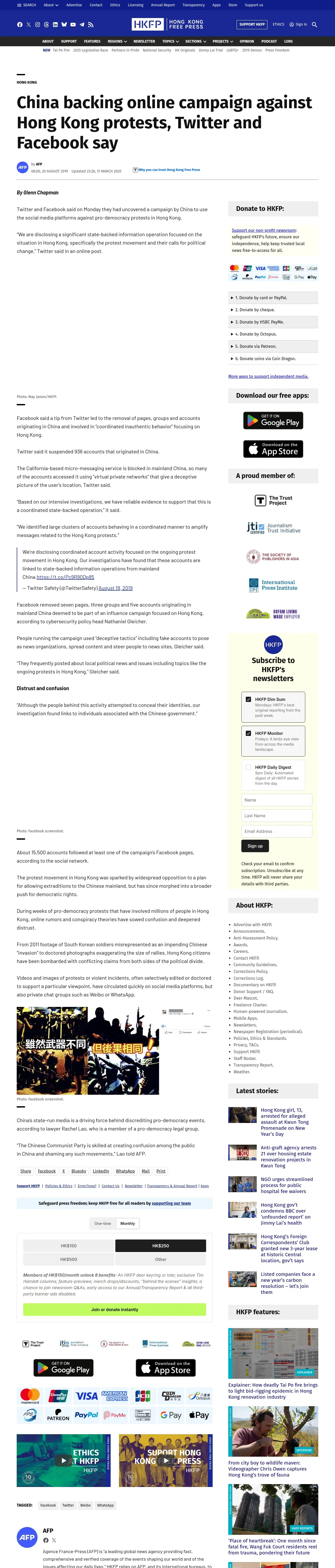 https://hongkongfp.com:443/2019/08/20/china-backing-online-campaign-hong-kong-protests-twitter-facebook-say/