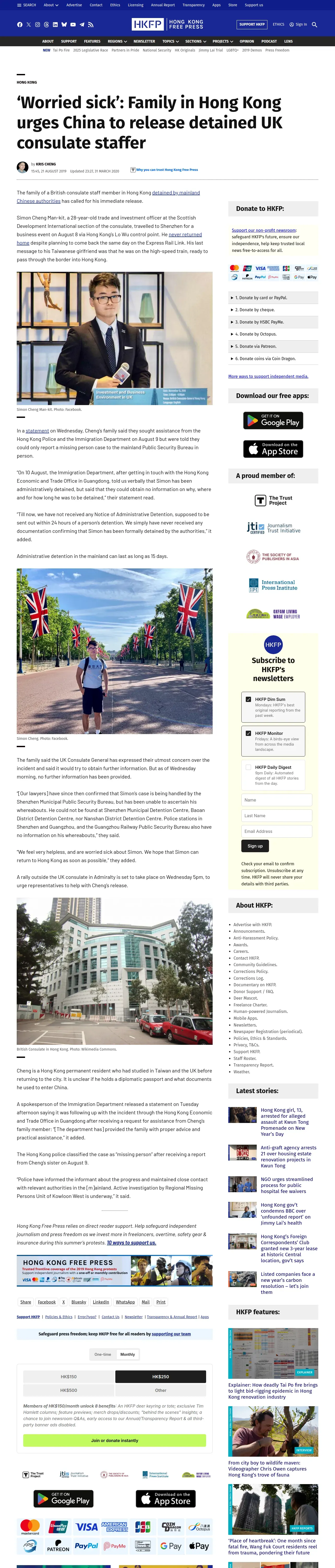 取得元URL: https://hongkongfp.com:443/2019/08/21/worried-sick-family-urges-china-release-detained-employee-uk-consulate-hong-kong/