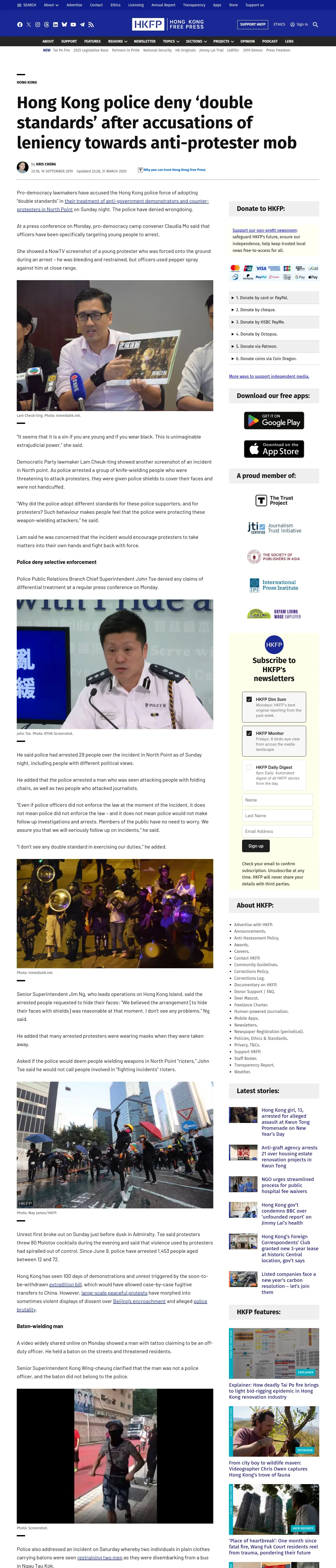 取得元URL: https://hongkongfp.com:443/2019/09/16/hong-kong-police-deny-double-standards-accusations-leniency-towards-anti-protester-mob/