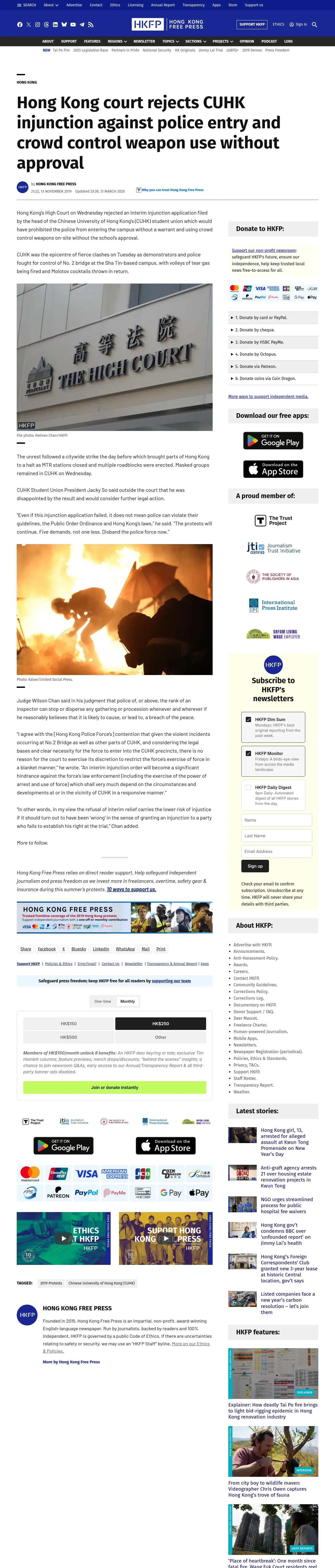https://hongkongfp.com:443/2019/11/13/breaking-hong-kong-court-rejects-cuhk-injunction-police-entry-crowd-control-weapon-use-without-approval/
