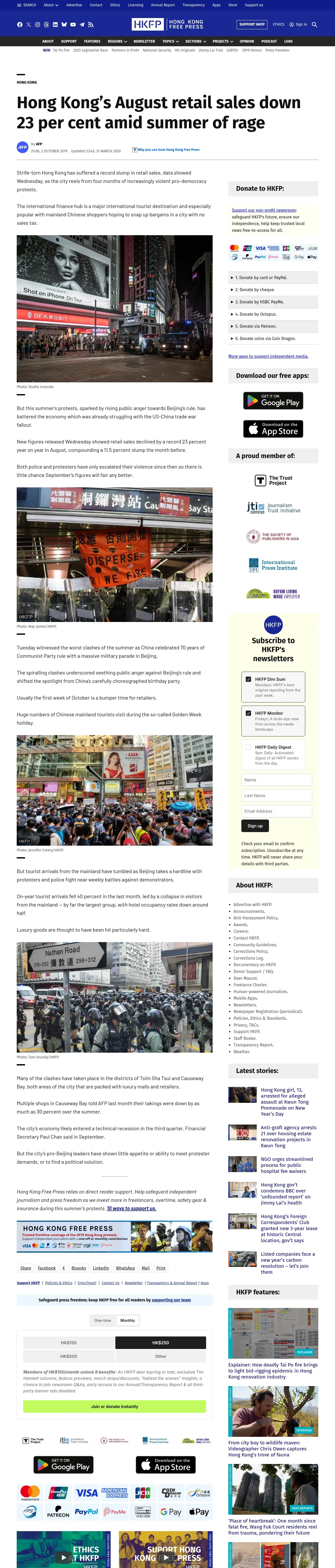 取得元URL: https://hongkongfp.com:443/2019/10/02/hong-kongs-august-retail-sales-23-per-cent-amid-summer-rage/