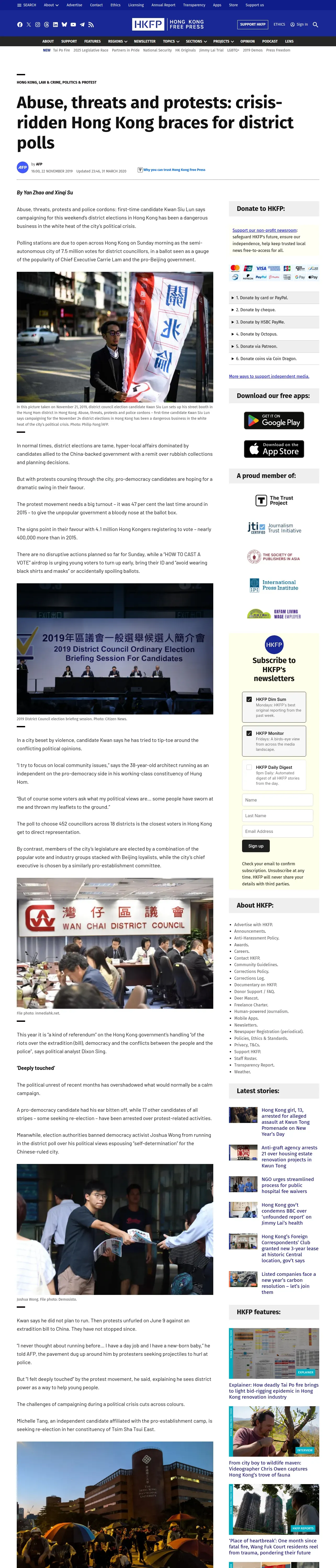 https://hongkongfp.com:443/2019/11/22/abuse-threats-protests-crisis-ridden-hong-kong-braces-district-polls/