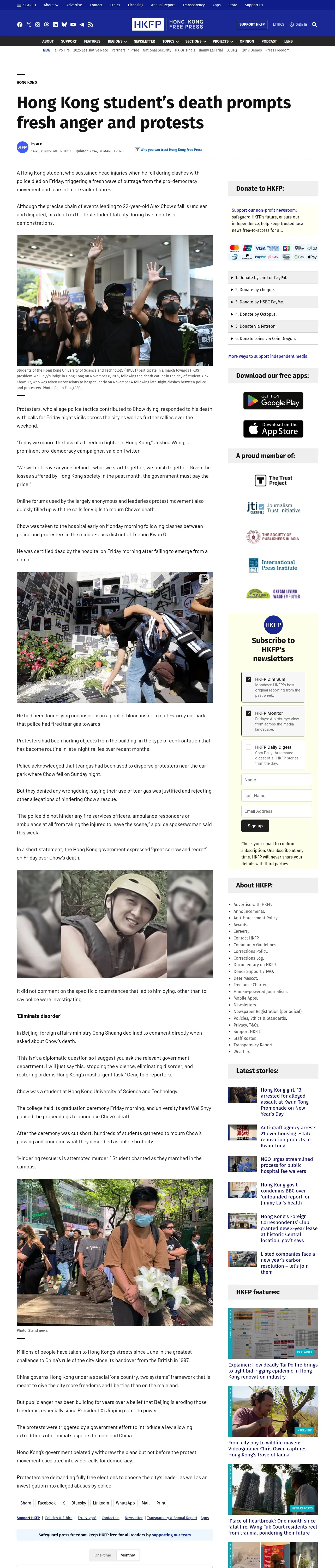 https://hongkongfp.com:443/2019/11/08/hong-kong-students-death-prompts-fresh-anger-protests/