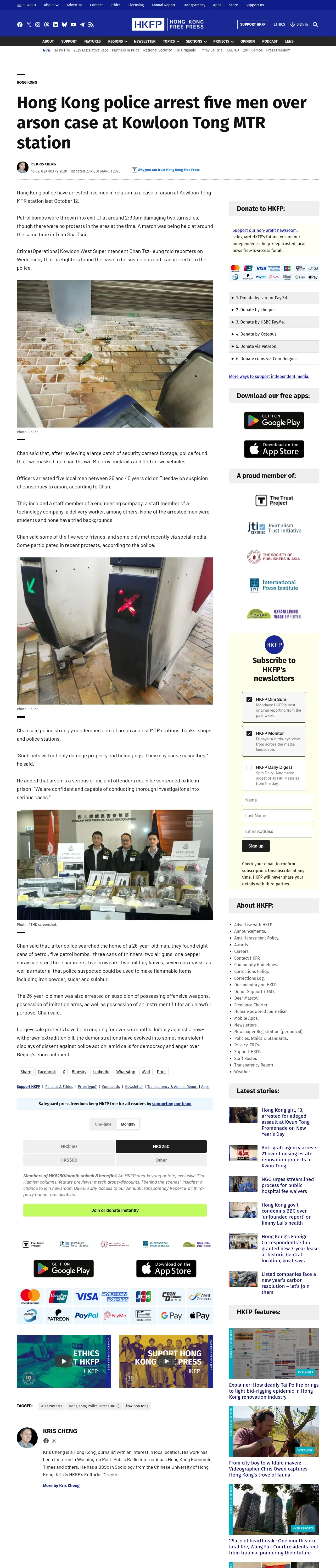 https://hongkongfp.com:443/2020/01/08/hong-kong-police-arrest-five-men-arson-case-kowloon-tong-mtr-station/