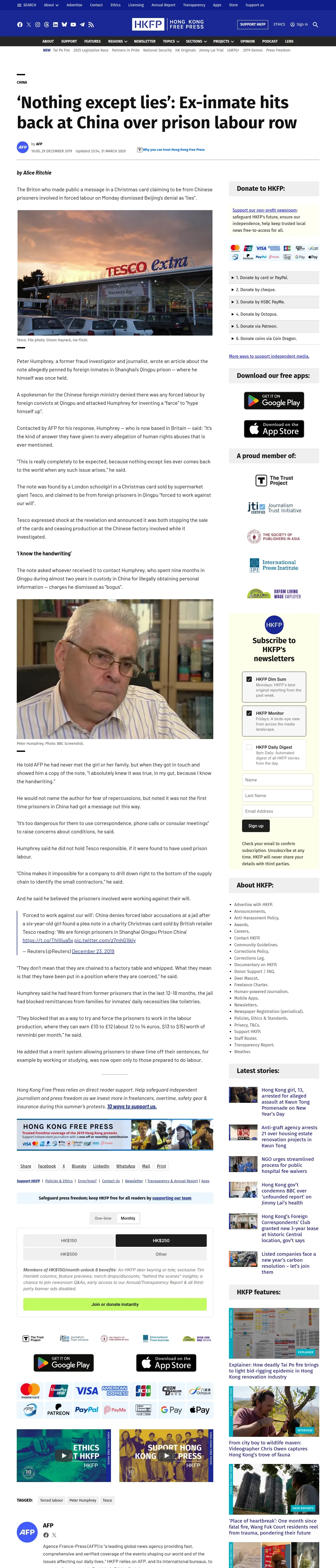 取得元URL: https://hongkongfp.com:443/2019/12/29/nothing-except-lies-ex-inmate-hits-back-china-prison-labour-row/