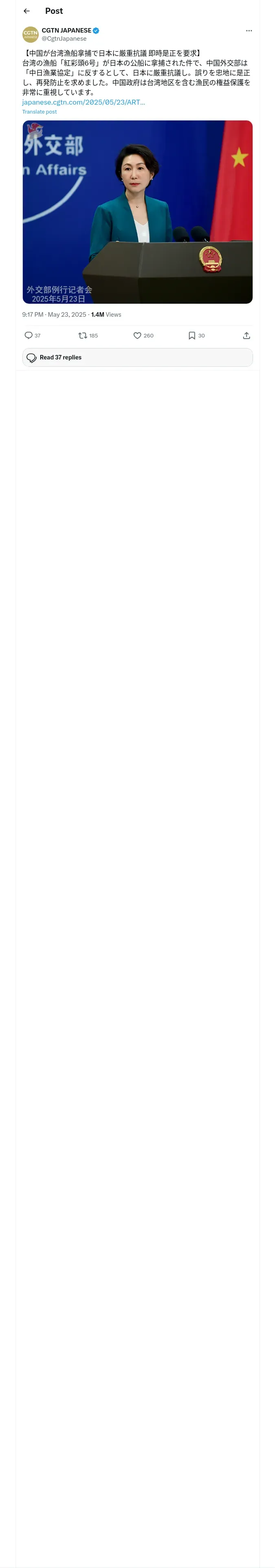 https://x.com:443/CgtnJapanese/status/1925888875408380236