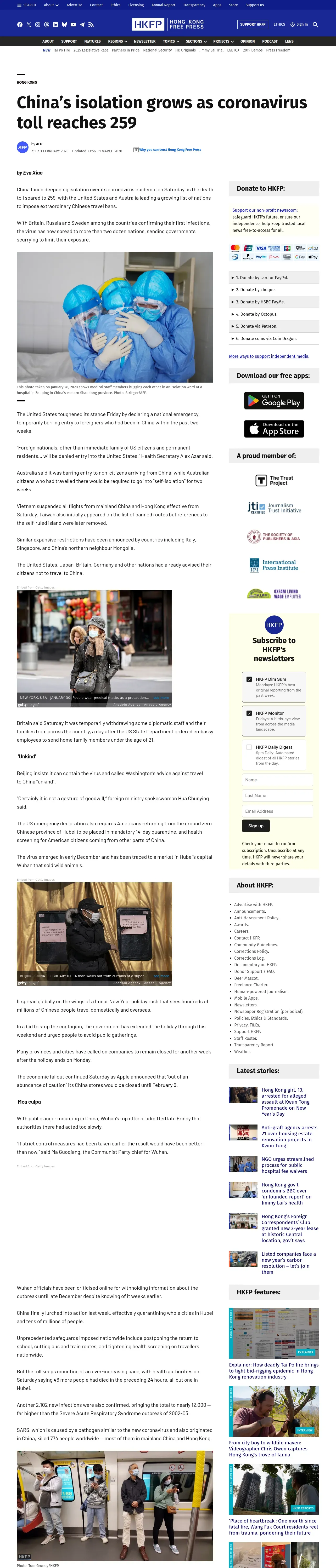 取得元URL: https://hongkongfp.com:443/2020/02/01/chinas-isolation-grows-coronavirus-toll-reaches-259/