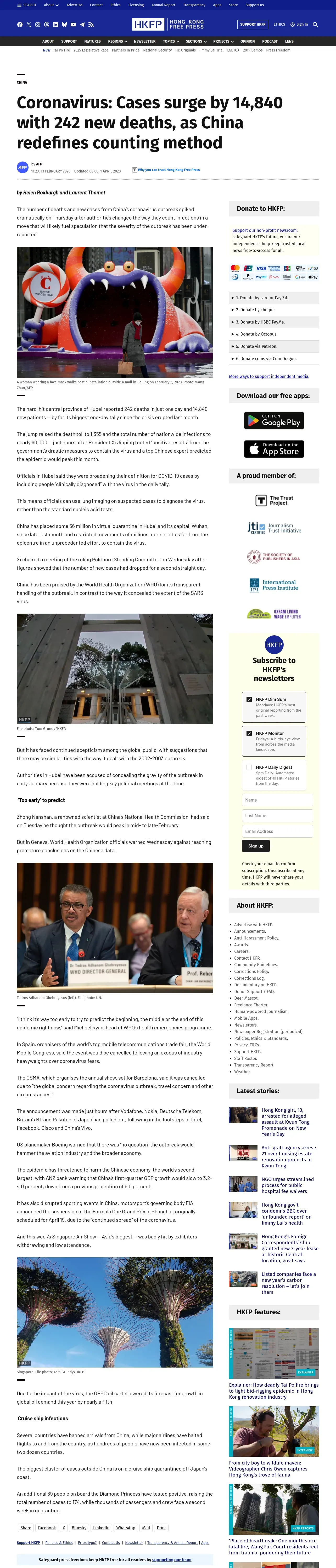 取得元URL: https://hongkongfp.com:443/2020/02/13/coronavirus-infections-surge-14840-china-242-new-deaths/
