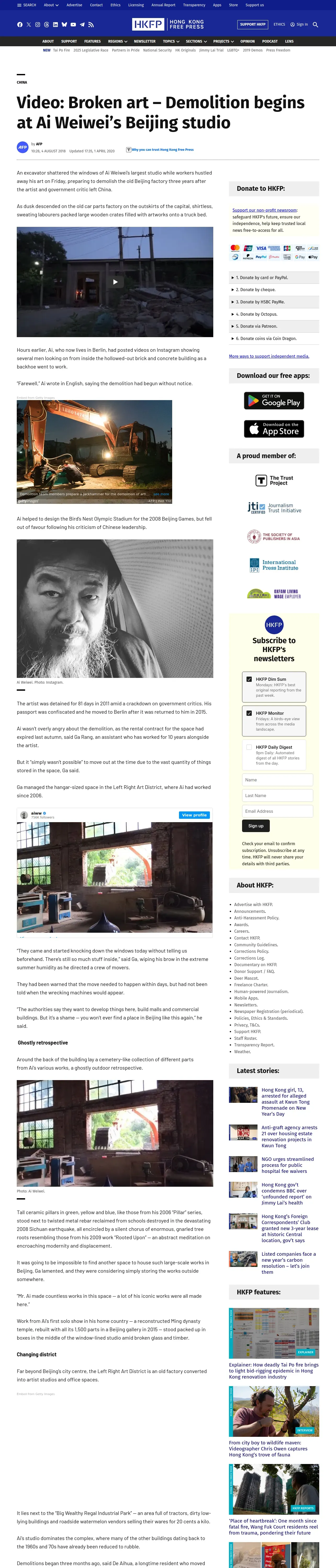 https://hongkongfp.com:443/2018/08/04/video-broken-art-demolition-begins-ai-weiweis-beijing-studio/