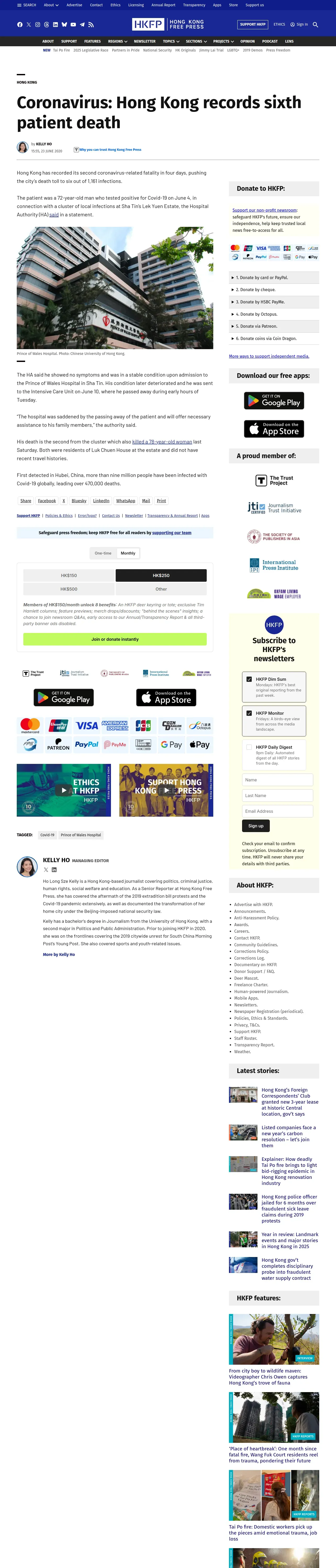 https://hongkongfp.com:443/2020/06/23/coronavirus-hong-kong-records-sixth-patient-death/