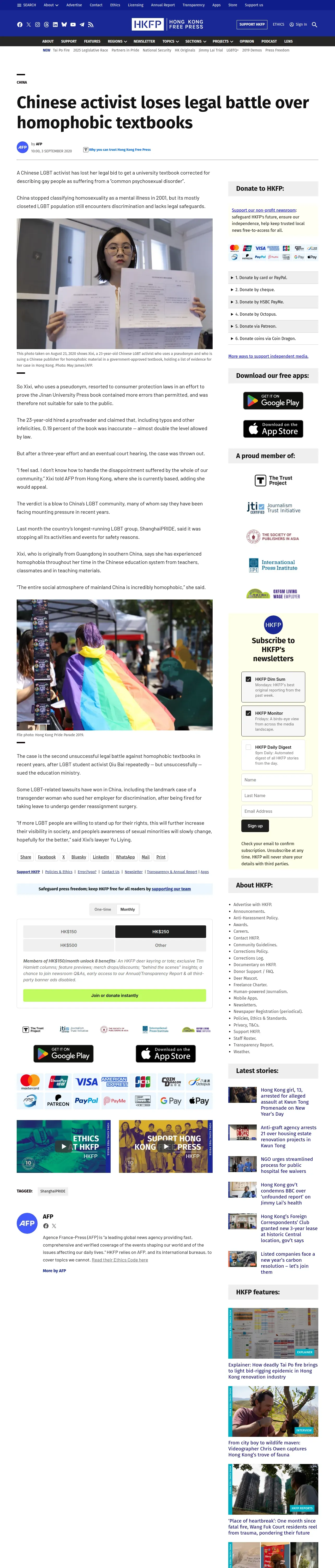 取得元URL: https://hongkongfp.com:443/2020/09/03/chinese-activist-loses-legal-battle-over-homophobic-textbooks/