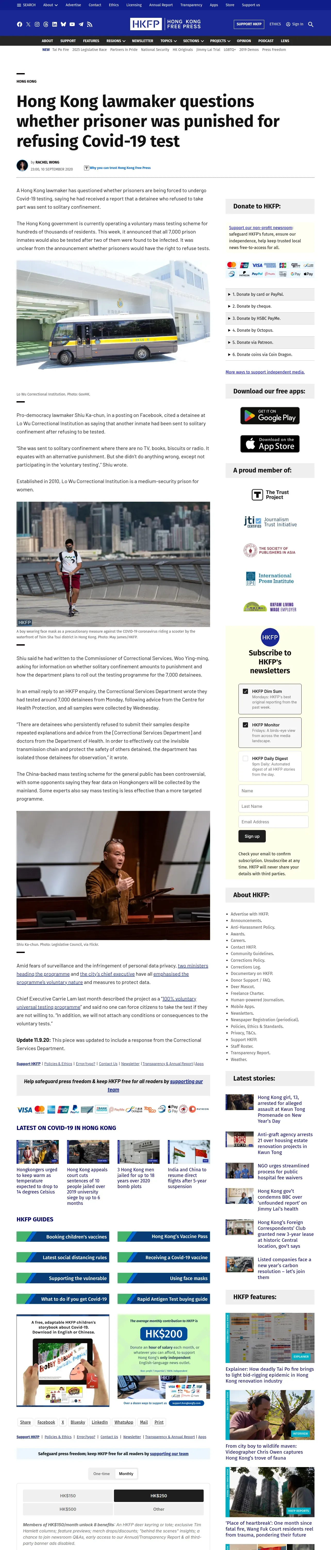https://hongkongfp.com:443/2020/09/10/hong-kong-lawmaker-questions-whether-prisoner-was-punished-for-refusing-covid-19-test/