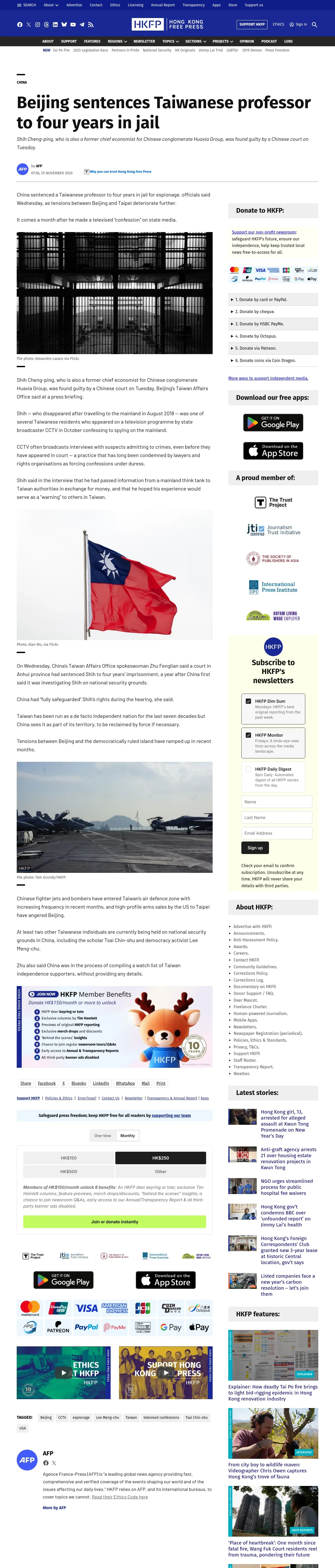 https://hongkongfp.com:443/2020/11/25/beijing-sentences-taiwanese-professor-to-four-years-in-jail/