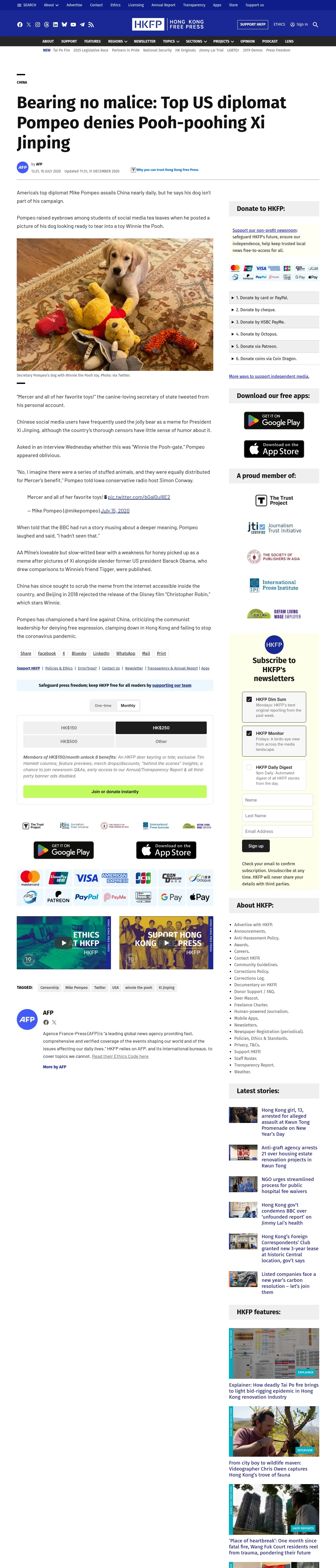 取得元URL: https://hongkongfp.com:443/2020/07/16/bearing-no-malice-top-us-diplomat-pompeo-denies-pooh-poohing-xi-jinping/