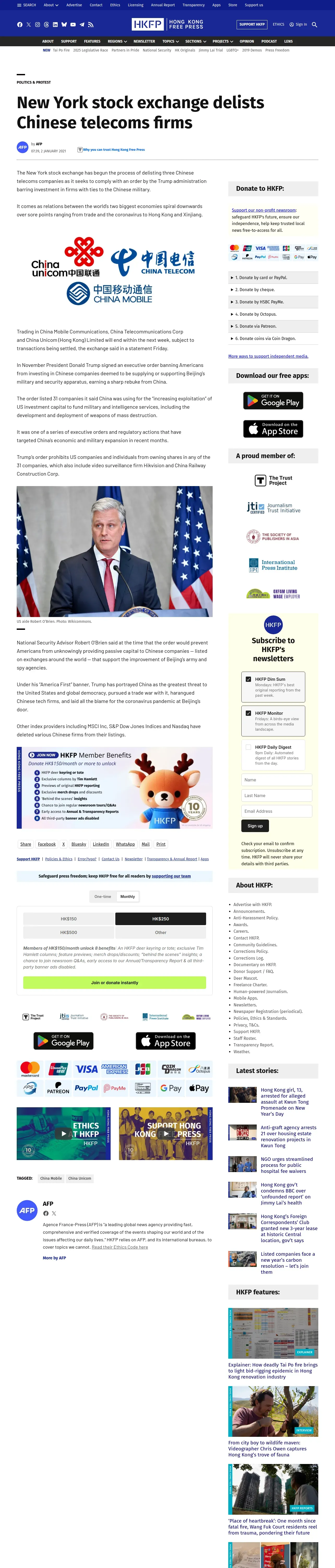 https://hongkongfp.com:443/2021/01/02/new-york-stock-exchange-delists-chinese-telecoms-firms/