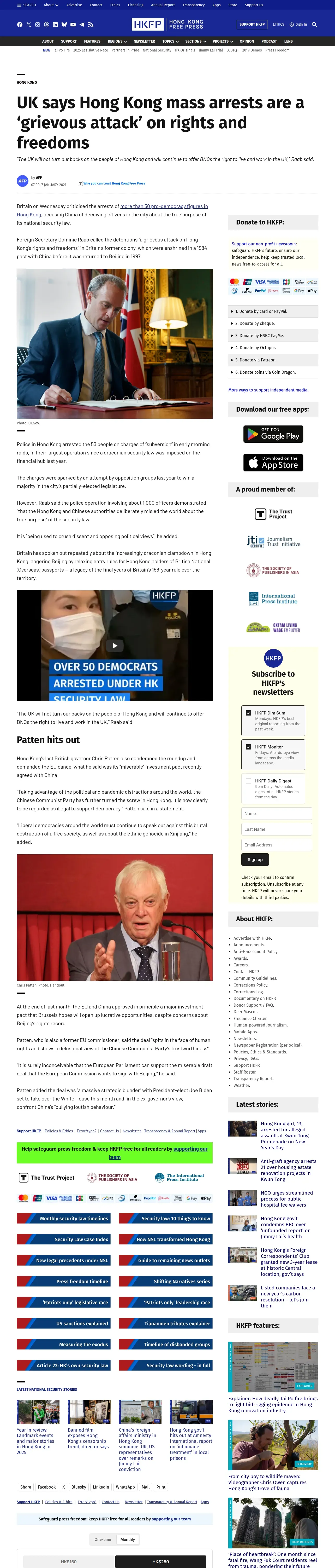 https://hongkongfp.com:443/2021/01/07/uk-says-hong-kong-mass-arrests-are-a-grievous-attack-on-rights-and-freedoms/