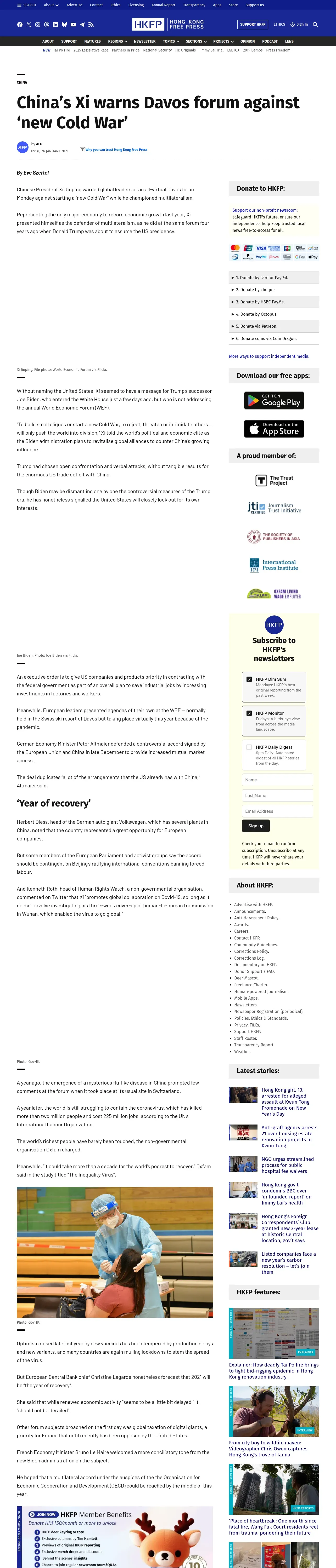 https://hongkongfp.com:443/2021/01/26/chinas-xi-warns-davos-forum-against-new-cold-war/