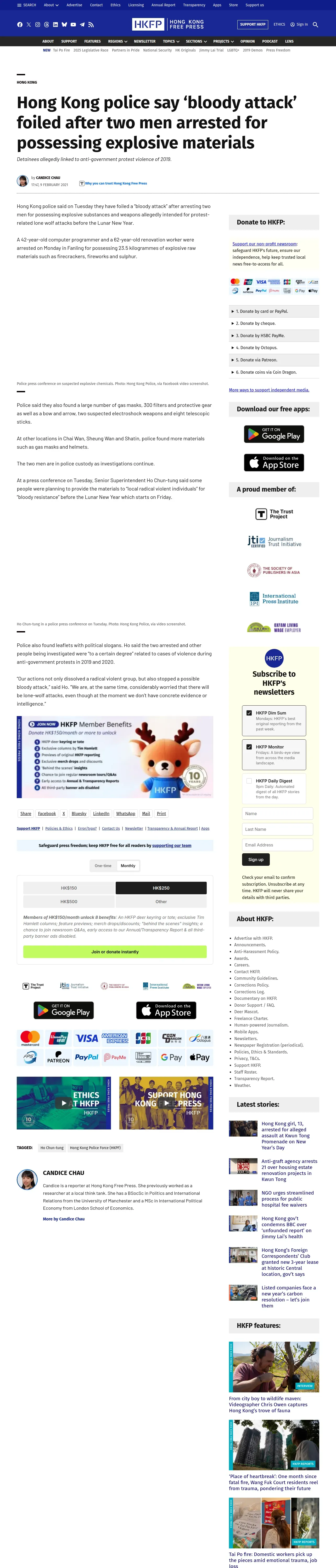 取得元URL: https://hongkongfp.com:443/2021/02/09/hong-kong-police-say-bloody-attack-foiled-after-two-men-arrested-for-possessing-explosive-materials/