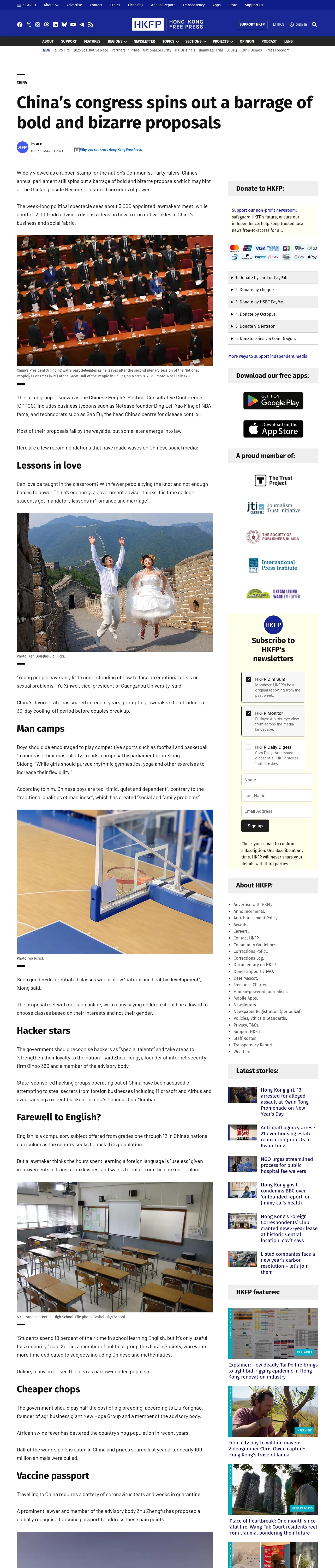 取得元URL: https://hongkongfp.com:443/2021/03/09/chinas-congress-spins-out-a-barrage-of-bold-and-bizarre-proposals/