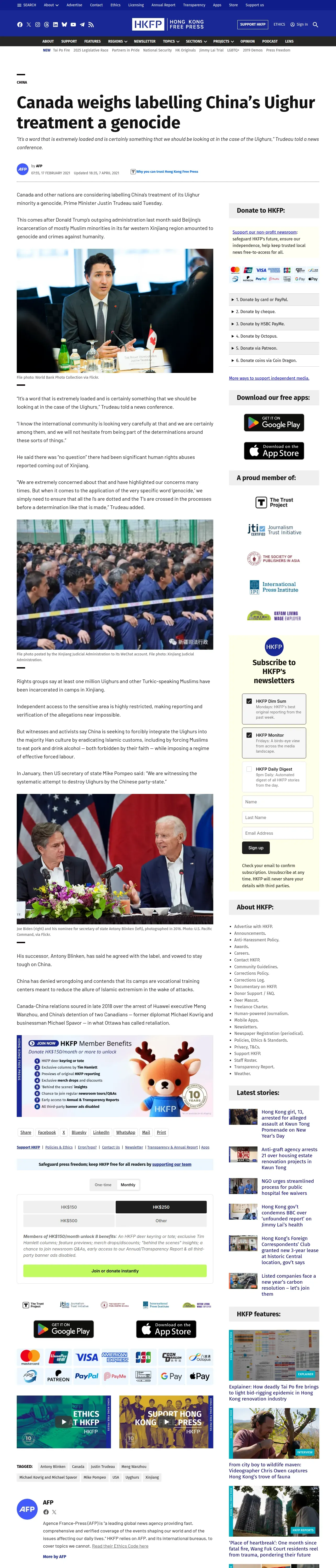 取得元URL: https://hongkongfp.com:443/2021/02/17/canada-weighs-labelling-chinas-uighur-treatment-a-genocide/