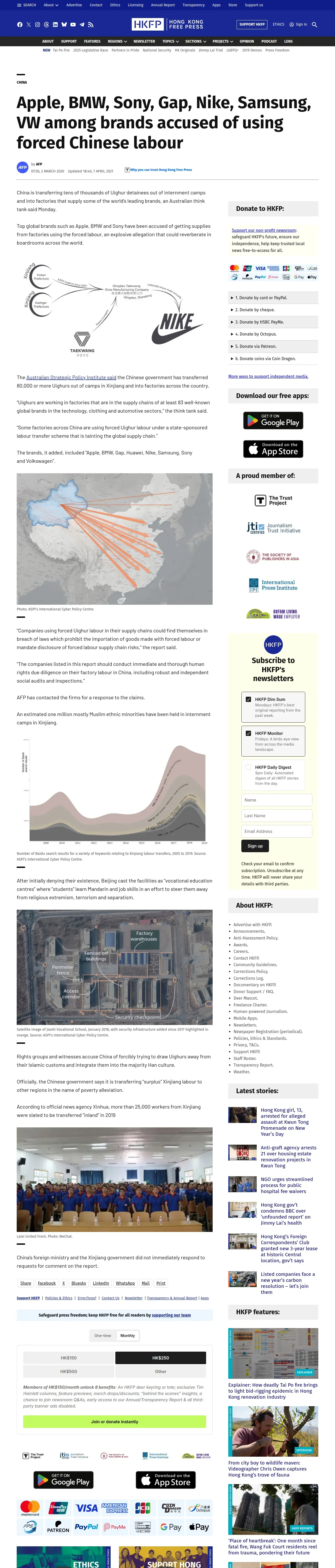 https://hongkongfp.com:443/2020/03/02/apple-bmw-sony-gap-nike-samsung-vw-among-brands-accused-using-forced-chinese-labour/