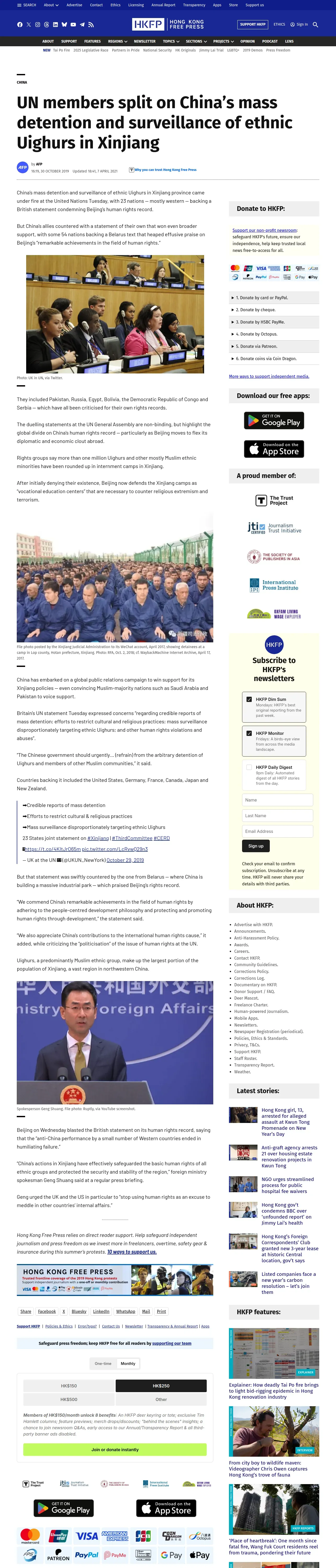 https://hongkongfp.com:443/2019/10/30/un-members-split-chinas-mass-detention-surveillance-ethnic-uighurs-xinjiang/