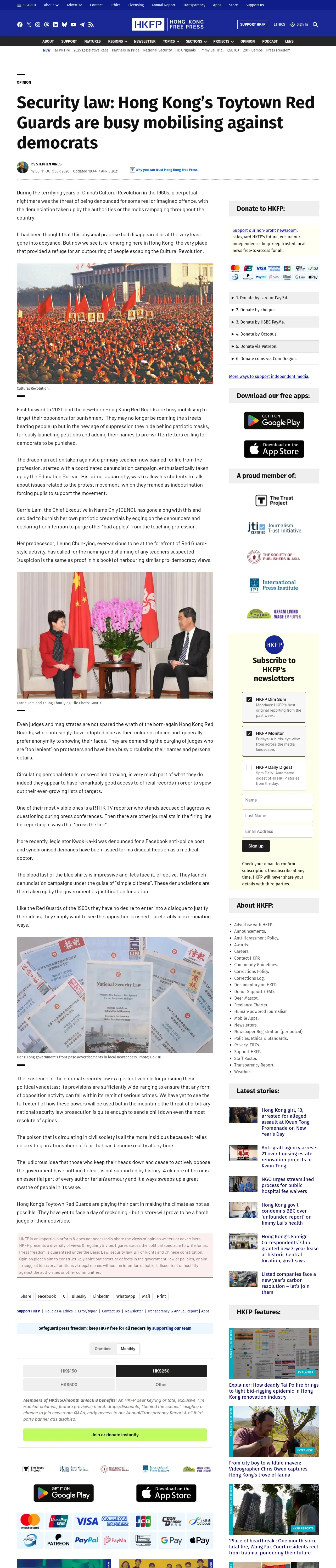取得元URL: https://hongkongfp.com:443/2020/10/11/security-law-hong-kongs-toytown-red-guards-are-busy-mobilising-against-democrats/